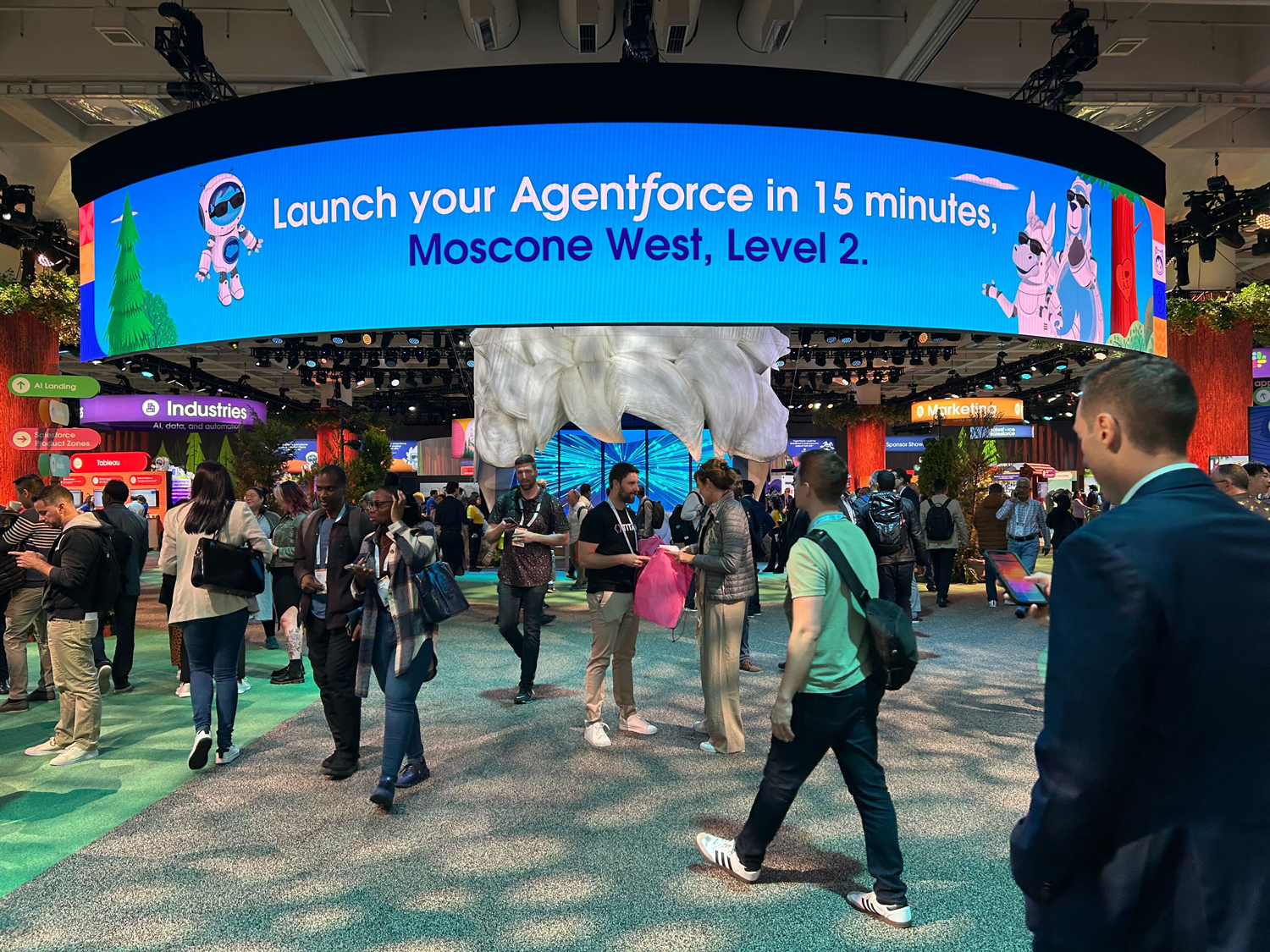 On a condensed timeline, we developed robotic versions of the brand’s mascots—most notably Agents Astro and Codey. These designs became a cornerstone of the event’s visual identity, taking center stage throughout the keynote and site activations to represent the future of Salesforce AI.